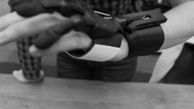 I tested this prototype with a person who has an approximated wrist size to a kid. This gave me good feedback about this "wrist" idea, and showed me two things...